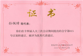 青島市十四屆人大三次會議優(yōu)秀代表建議