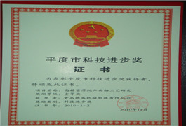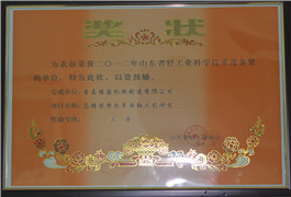 山東省輕工業(yè)科技進(jìn)步獎證書