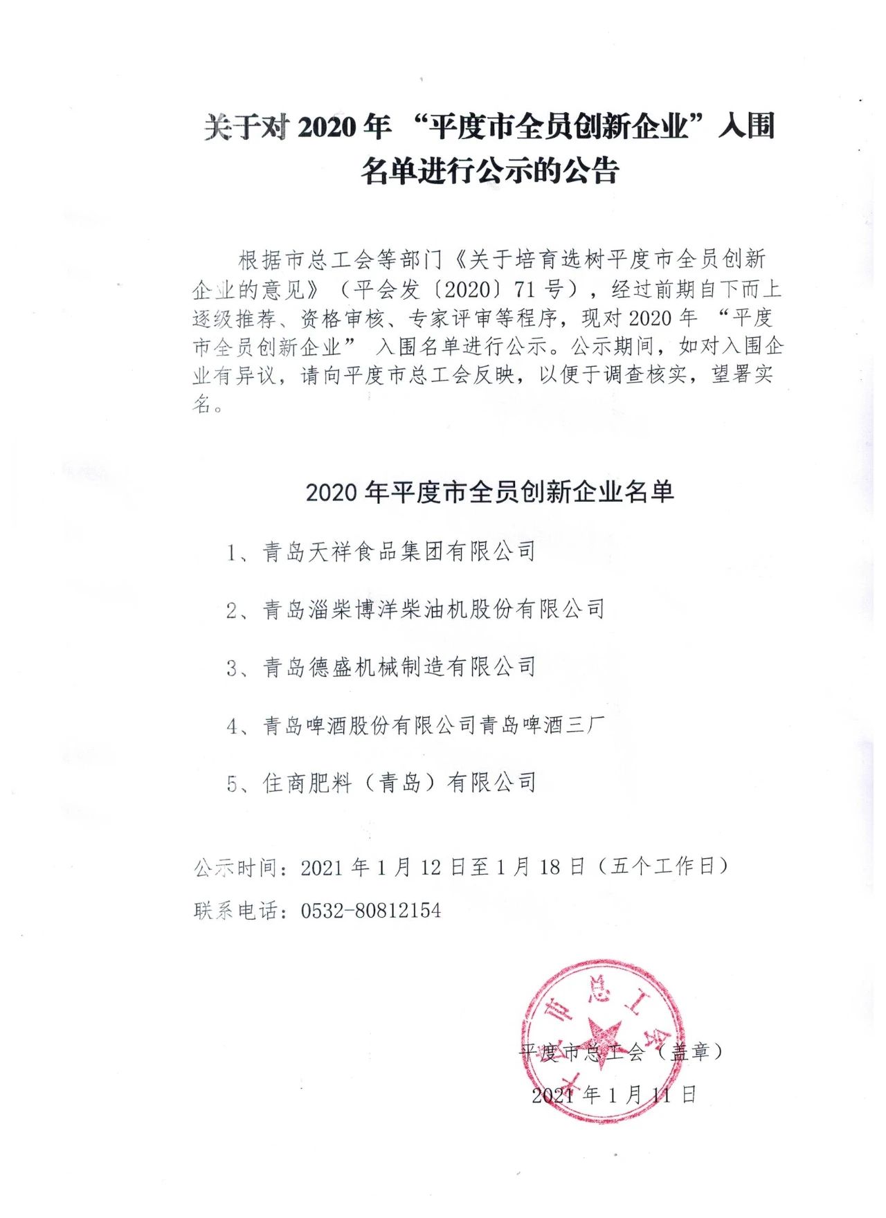 平度市2020年度促進(jìn)實體經(jīng)濟(jì)高質(zhì)量發(fā)展-青島市科學(xué)技術(shù)獎