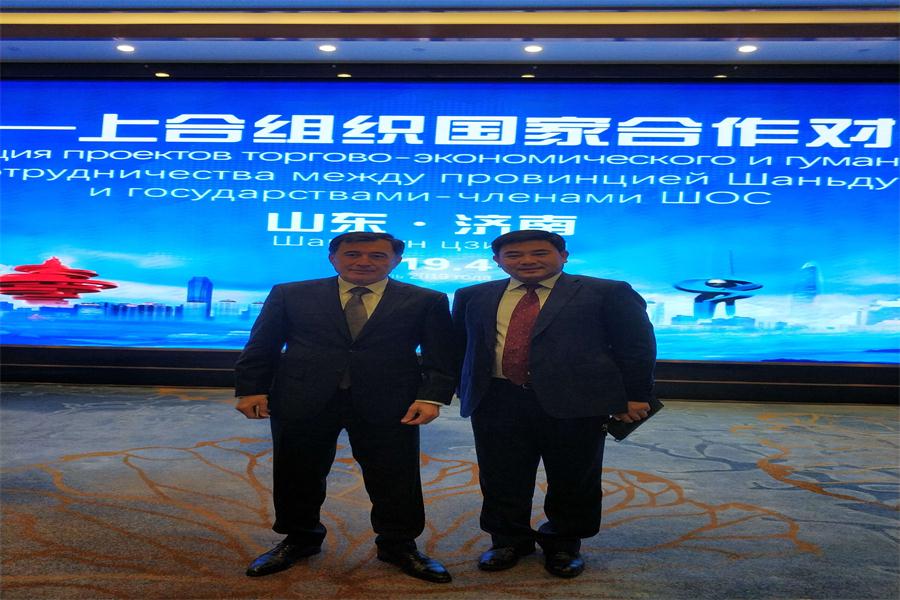 2019年4月4日,山東省民營企業(yè)高質量發(fā)展服務隊邀請部分服務對象企業(yè)參加在濟南舉辦的“山東-上合組織國家合作對話會”,我公司總經理張海德、國際貿易部經理邵武彬代表公司參加了本次高級別國家對話會,會議期間與各國大使進行了友好交流,取得了非常好的效果。