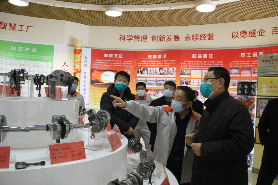 楊宏鈞主席一行現(xiàn)場調(diào)研了科技文化館和智能化生產(chǎn)車間。對我公司在全面落實疫情防控和復工復產(chǎn)等方面的做法給予充分肯定。并指出,德盛公司要搶抓機遇,確保企業(yè)生產(chǎn)安全有序,助力全市經(jīng)濟社會快速發(fā)展。