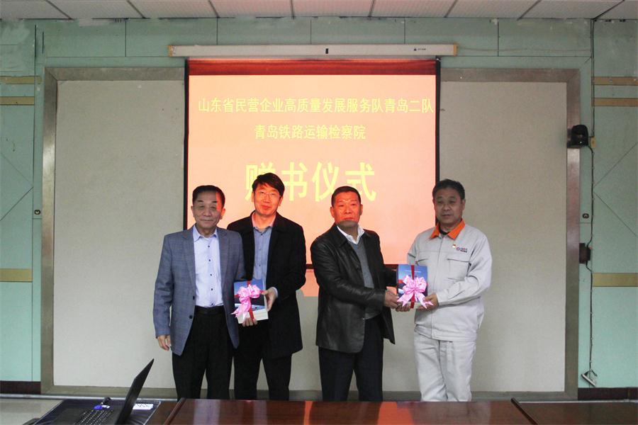 省民營(yíng)企業(yè)高質(zhì)量發(fā)展服務(wù)隊(duì)和青島鐵路運(yùn)輸檢察院的各位領(lǐng)導(dǎo)參觀了科技文化館、智能化生產(chǎn)車間和信息化系統(tǒng)管理平臺(tái),對(duì)我公司在全面落實(shí)疫情防控和復(fù)工復(fù)產(chǎn)等方面的做法給予充分肯定。最后,在公司培訓(xùn)中心進(jìn)行了座談,共同探討今后高質(zhì)量發(fā)展服務(wù)相關(guān)工作的重點(diǎn)和方向,并舉行了贈(zèng)書(shū)儀式和防疫物資捐贈(zèng)儀式。