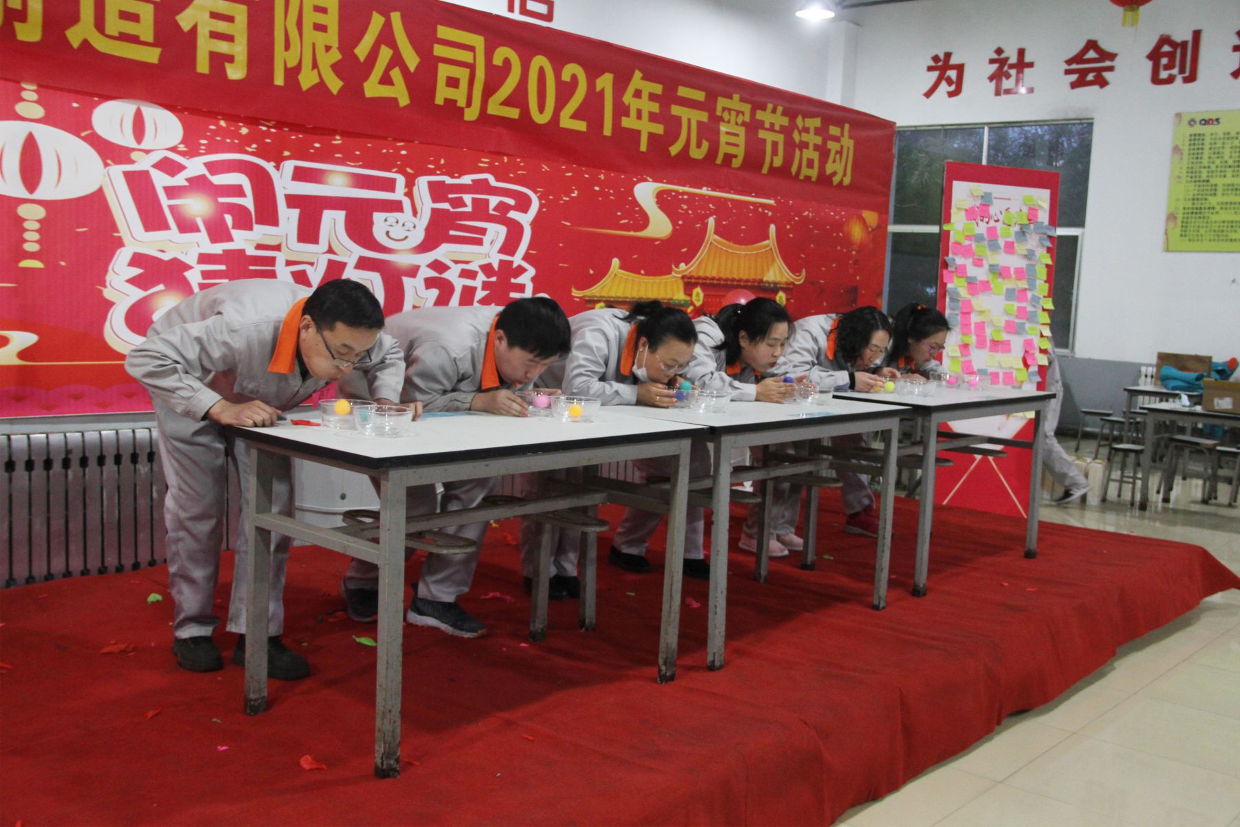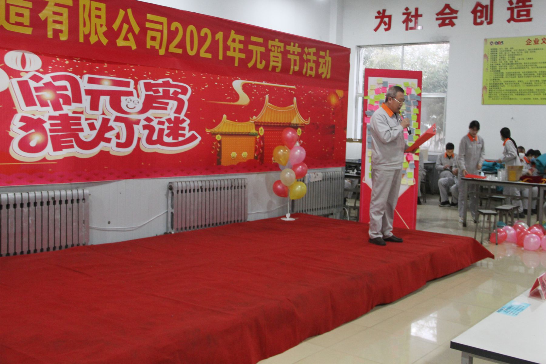 為弘揚(yáng)中國(guó)傳統(tǒng)元宵節(jié)文化,豐富全體員工文娛生活,營(yíng)造新春佳節(jié)喜慶、祥和的節(jié)日氛圍,增強(qiáng)員工團(tuán)結(jié)、向上、積極的工作精神,促進(jìn)生產(chǎn)經(jīng)營(yíng)工作良好發(fā)展。2月25日晚17:20,由公司團(tuán)委牽頭組織的2021年度“猜燈謎、慶元宵”聯(lián)歡晚會(huì)在員工餐廳隆重舉行。