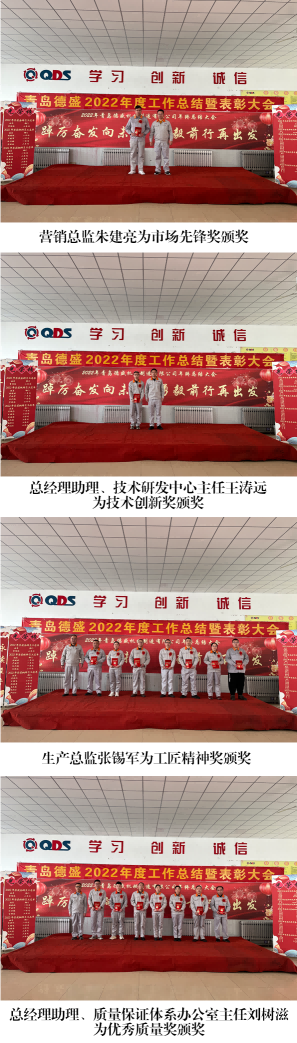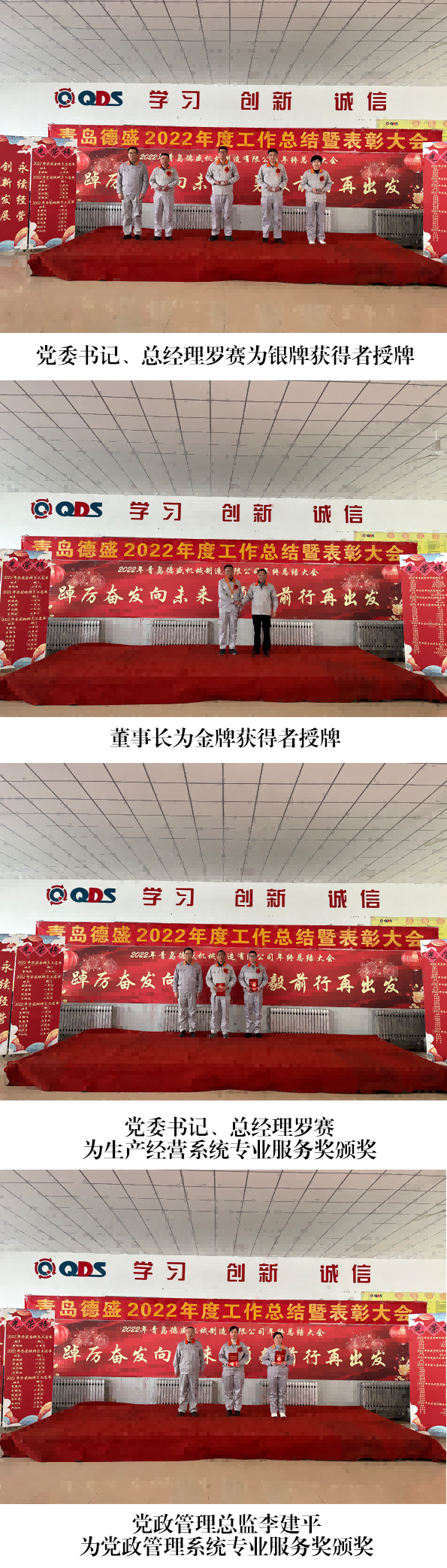 大會舉行了隆重的頒獎儀式,為劉書亮等4 名員工頒發(fā)“專業(yè)服 務(wù)獎”;為王杰頒發(fā)“市場先鋒獎”;為李文頒發(fā)“技術(shù)創(chuàng)新獎”;為 王佳麗等7 名員工頒發(fā)“工匠精神獎”;為任立剛等 7 名員工頒發(fā)“優(yōu) 秀質(zhì)量獎”;為劉海寧等4 名員工頒發(fā)“管理卓越獎”;為入職工作滿 10 年的李新作等6 名員工頒發(fā)銅牌;為入職工作滿 20 年的任興鵬等 4 名員工頒發(fā)銀牌;為入職工作滿30 年的曹明睿頒發(fā)金牌。榮獲獎 牌代表任興鵬、優(yōu)秀員工代表劉海寧分別發(fā)言,他們感謝公司的培養(yǎng)、 領(lǐng)導(dǎo)的信任和同事們的支持,并表示2023 年一定立足本職崗位,將 董事長提出的“調(diào)結(jié)構(gòu)、促重點、穩(wěn)投入、占高端、聚焦發(fā)展”的工 作總基調(diào)與本職工作相結(jié)合,不斷創(chuàng)新工作思路,努力提高工作能力 和工作水平,力求將各項工作做得更加扎實、更加到位,為公司的發(fā) 展做出新的貢獻!