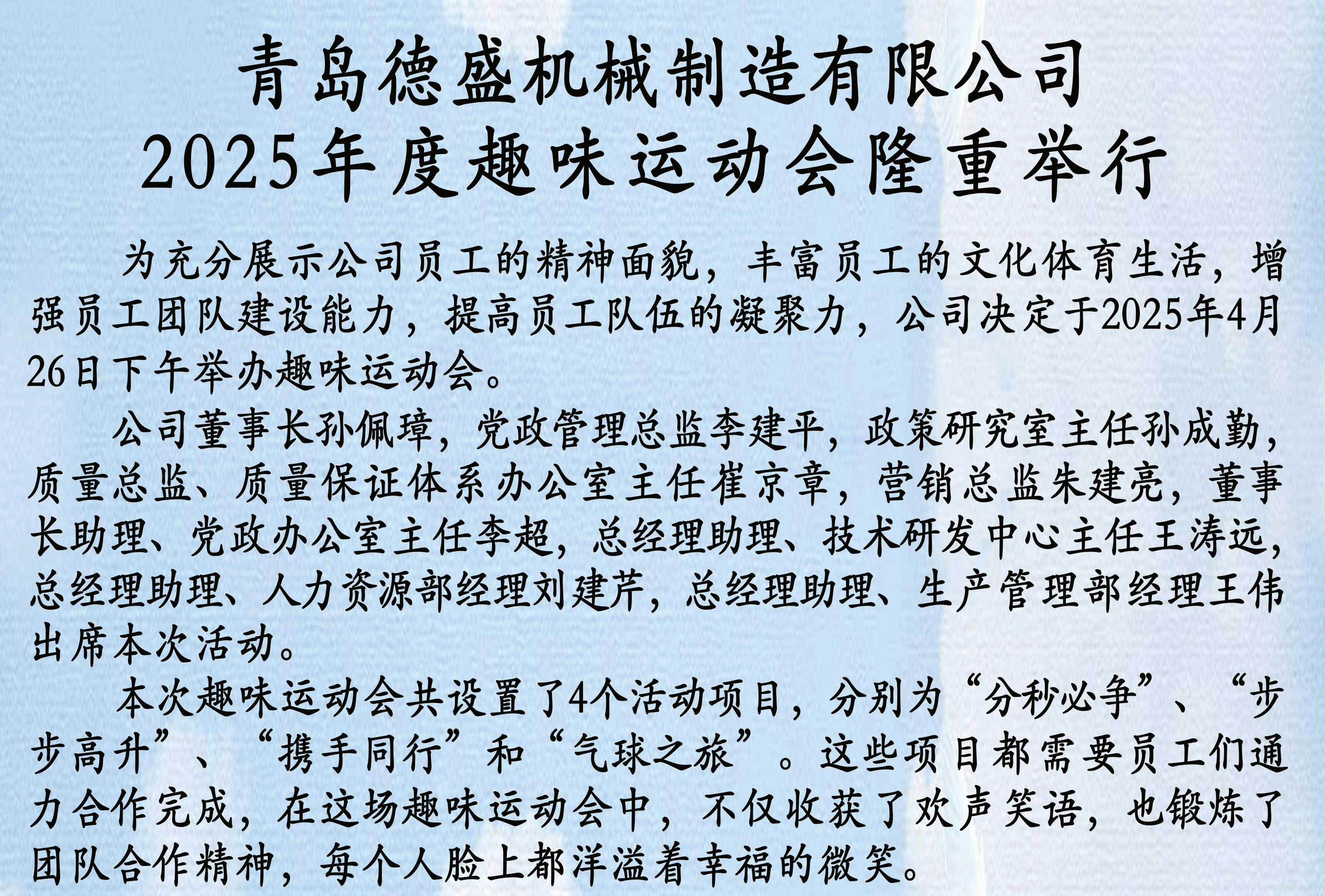 青島德盛機(jī)械制造有限公司2025年度趣味運(yùn)動(dòng)會(huì)隆重舉行