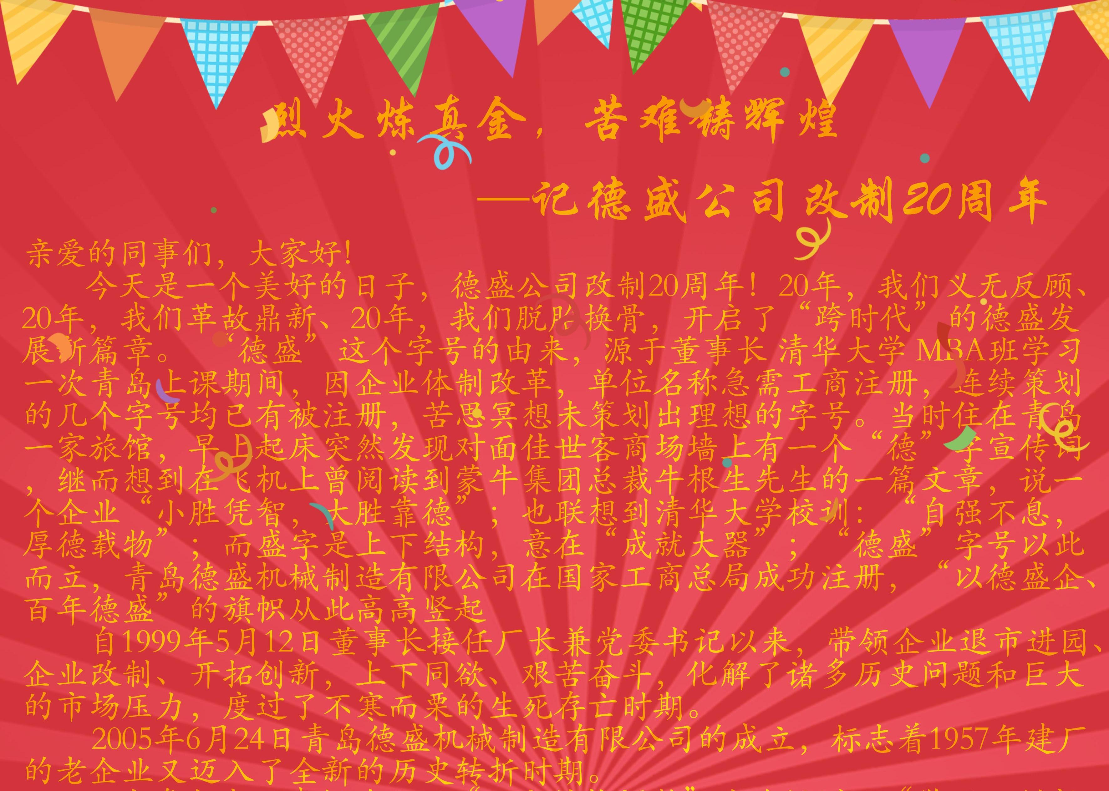 熱烈慶祝青島德盛機(jī)械制造有限公司改制20周年!